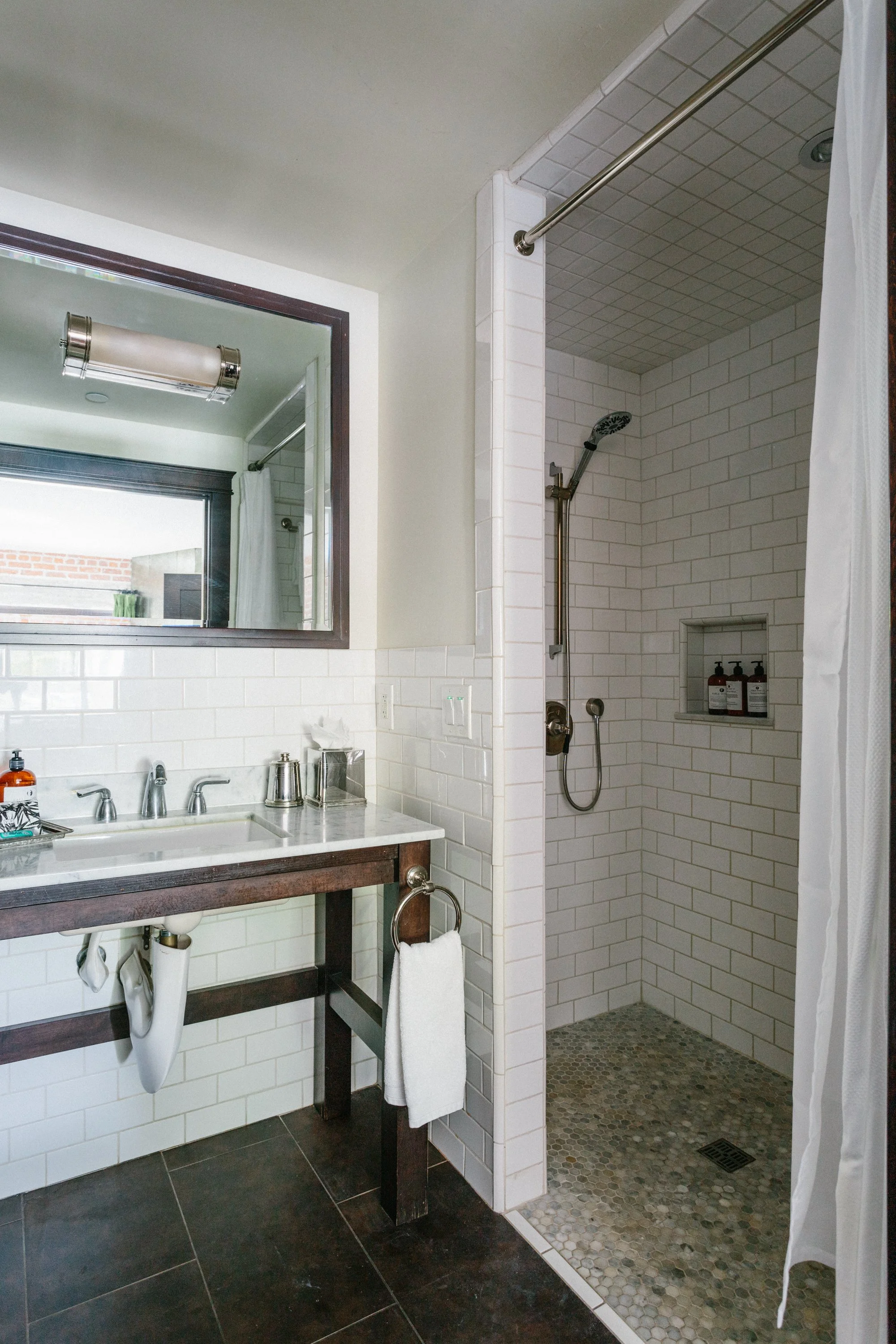 Each of our 17 elegantly appointed guest rooms have been thoughtfully designed with antique furnishings, rich textiles, and commissioned artwork that complement the historic property’s original hardwood floors, steel framing, and exposed brick walls. Our carefully curated collection of signature amenities includes:
